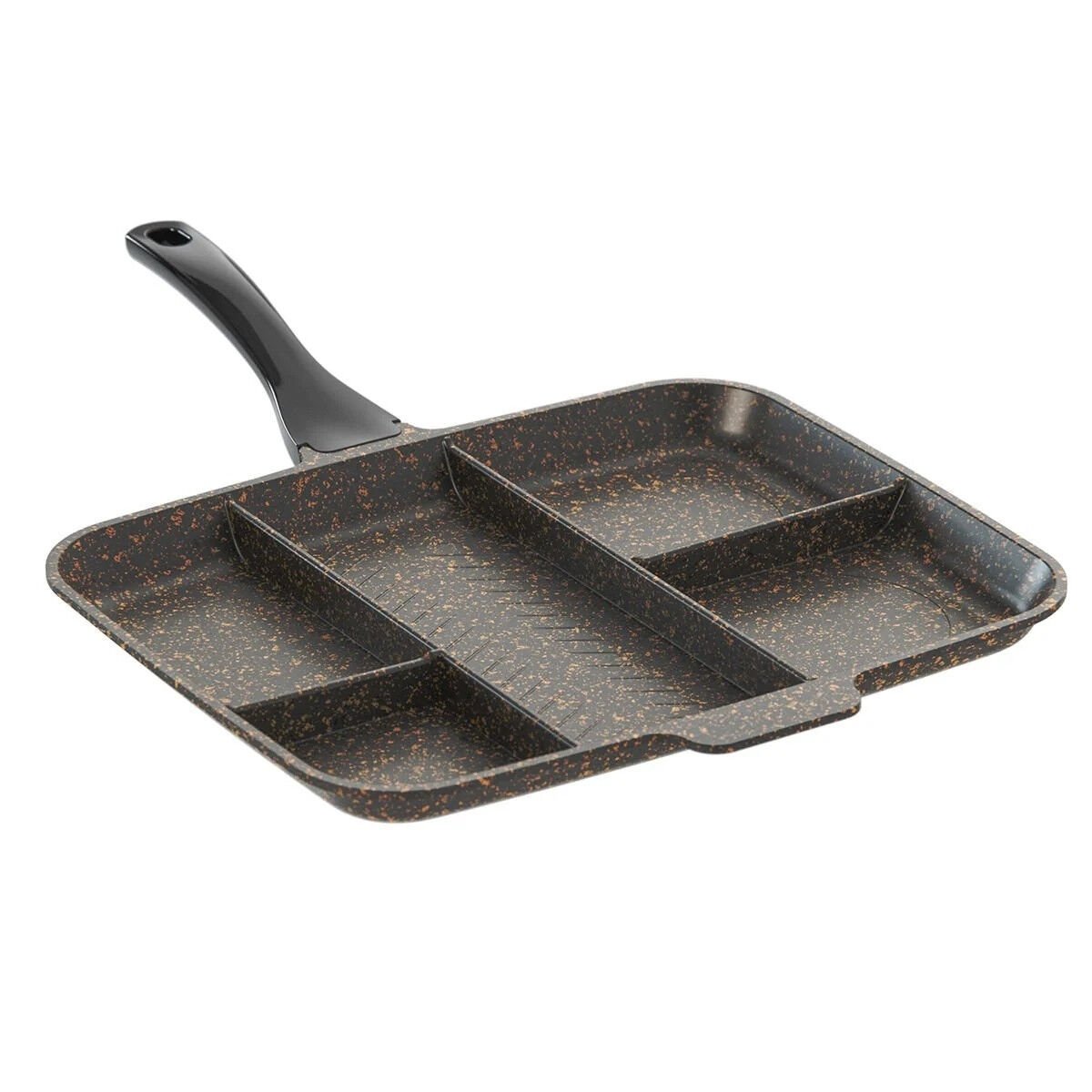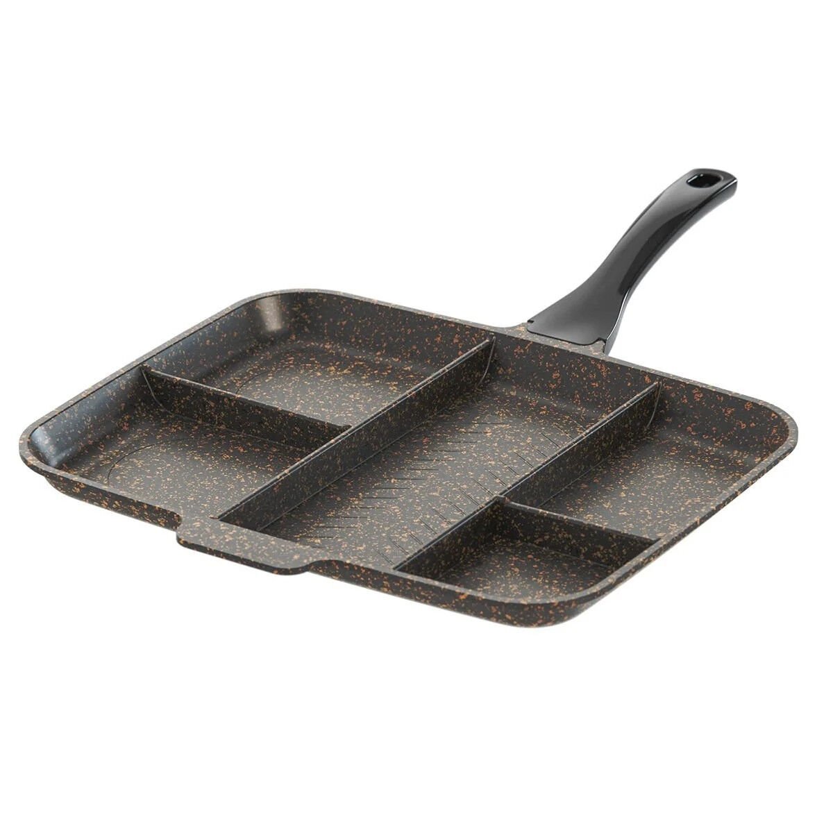 Farklı 5 bölmesi sayesinde et, sebze, yumurta gibi birden fazla yemeği aynı anda pişirerek zamandan tasarruf edebilirsiniz.Yapışmaz ve çizilmelere karşı dayanıklı granit kaplaması sayesinde temizliği kolaydır. Gövdesi ise eşit ısı dağılımı sağlayarak yemeklerinizin daha lezzetli olmasını sağlar. Hafif ve taşınabilir olmasıyla da kamp hayatınızı kolaylaştırır. PFAS ve zararlı kimyasallar içermez.
