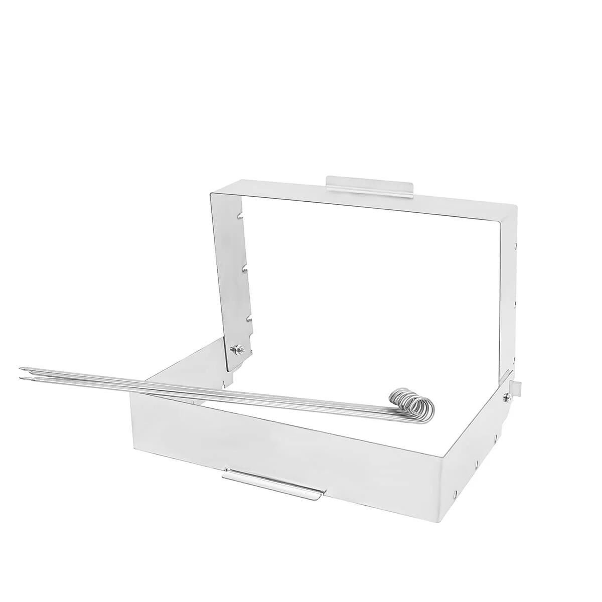 Şiş Aparatı Tüm Ateş Üstü Izgaralar İçin Uyumludur, 316 X 256 Mm Uyumlu Ebatlara Sahip Mangal Ve Izgaralar İçin De Kullanılır. Pratik Kullanım Ve Kompakt Bir Yapıya Sahiptir. Hızlı kolay kurulum ve Temizlenir.